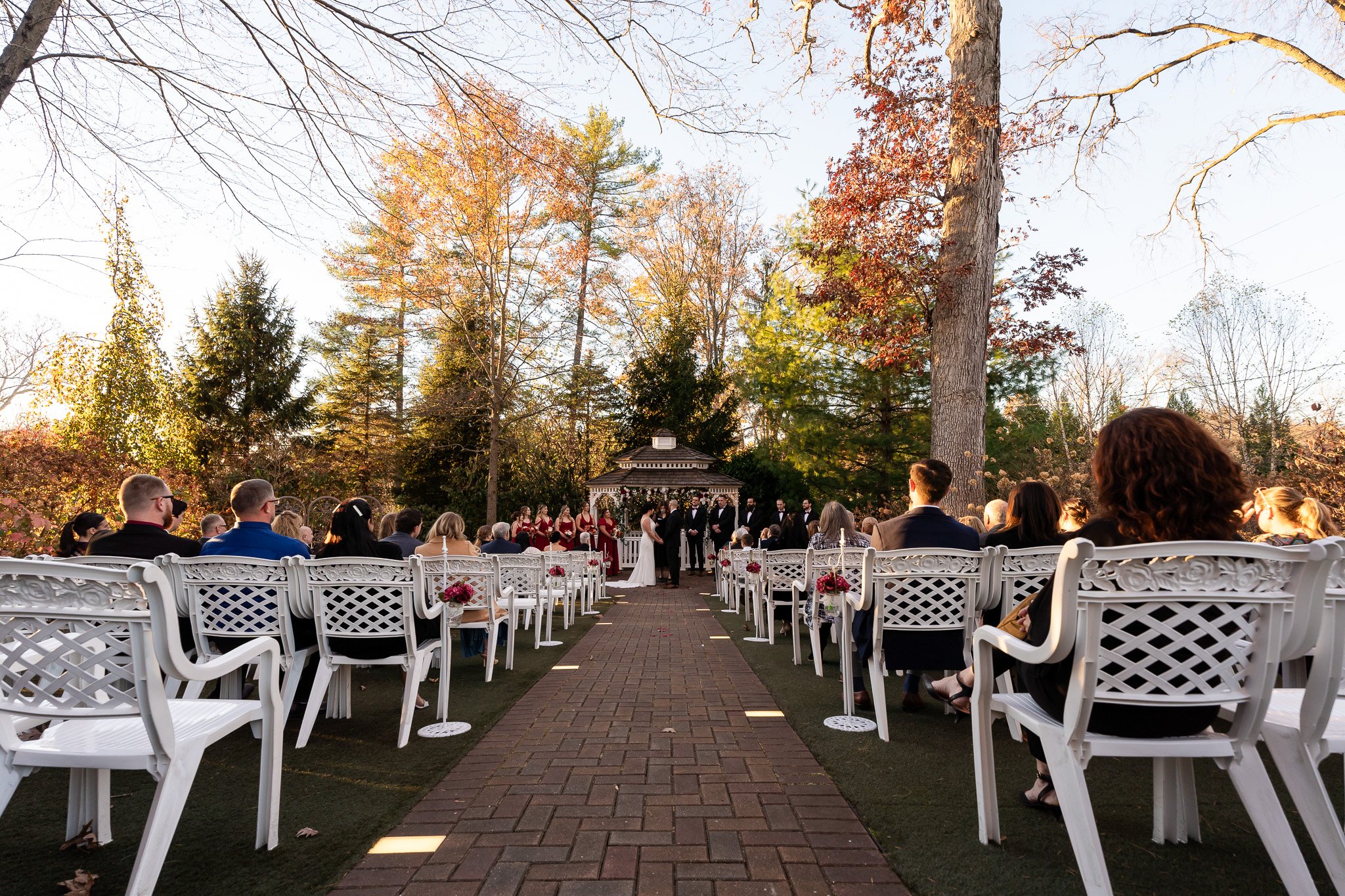 Shelby and Aaron exchanged their heartfelt marriage vows on a gorgeous autumn day, filled with vibrant colors and a gentle breeze. They prepared for their big day at a nearby hotel, surrounded by loved ones, before making their way over to the enchanting Meredith Manor for their much-anticipated first look with each other. In the serene outdoor ceremony area, they exchanged the beautiful vows they wrote for each other as the sun set. Following the touching ceremony, everyone walked together to the elegant ballroom at Meredith Manor, where lively music kept friends and family dancing joyfully all night long, celebrating the union of Aaron and Shelby in their new marriage. We’re absolutely thrilled to have been a part of Shelby and Aaron’s unforgettable wedding day! We wish them nothing but the very best as they embark on this exciting new chapter of their lives together!
